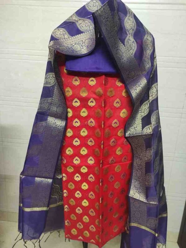 RED AND VIOLET COLOUR BANARSI SILK SUIT