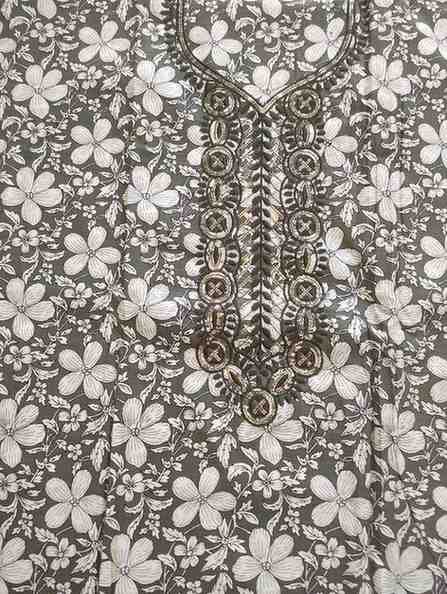 MILITARY GREEN COLOUR PURE COTTON PRINTED AND EMBROIDED SUIT