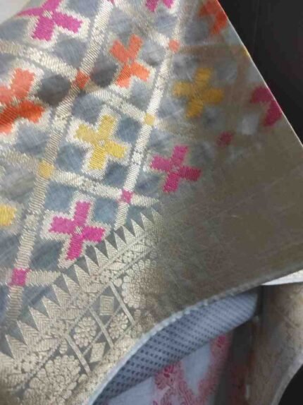 LIGHT GREY COLOUR CHANDERI BANARSI SUIT