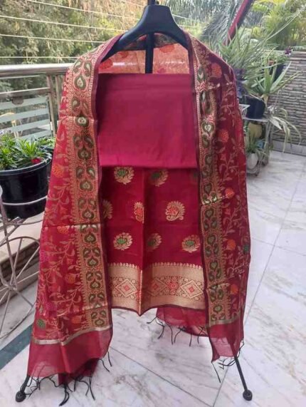 DARK ORANGE COLOUR ORGANZA BANARSI SILK SUIT