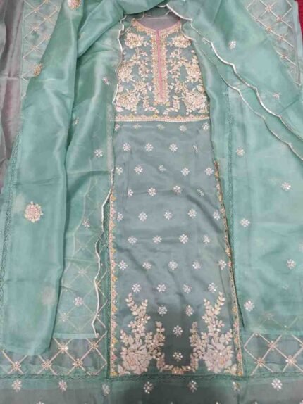 LIGHT BLUE COLOUR HEAVY EMBRIODED PURE ORGANZA SUIT