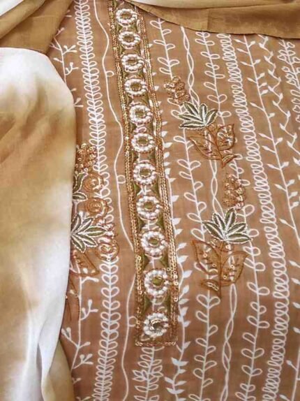 KHAKI YELLOW COLOUR HEAVILY EMBRIODED PURECOTTON SUIT