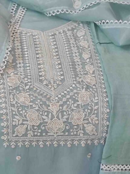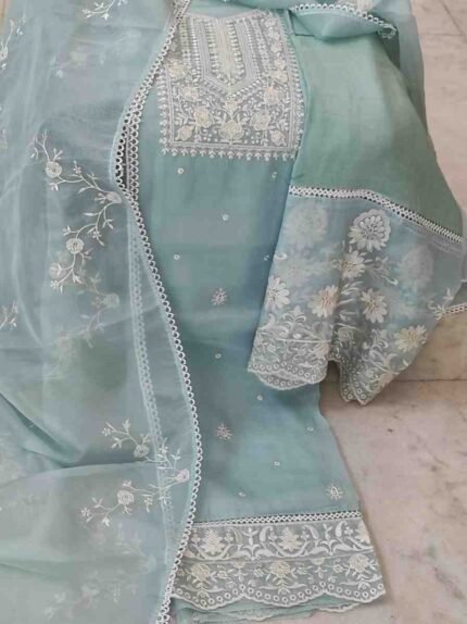 LIGHT BLUE COLOUR PURE ORGANZA EMBRIODERY WORK SUIT