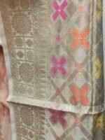 Beige colour chanderi banarsi silk suit material with zari woven meenakari work all over.