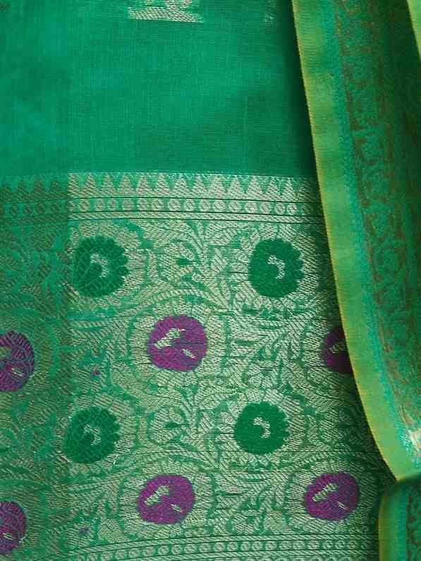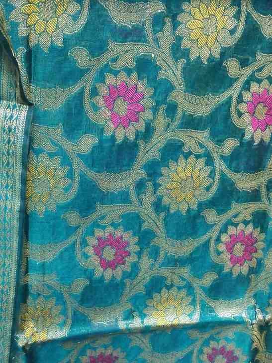 Dupatta: 2.5 metres dark orange colour banarsi dupatta with all over zari woven zaal work pattern and tassels at the ends.Dry clean only for maintainence.