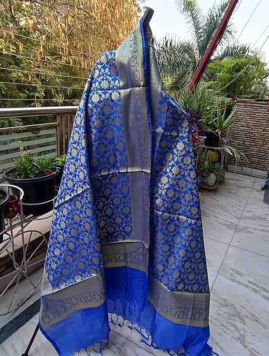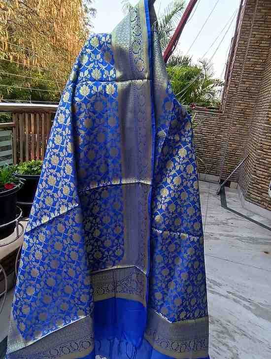 ” Exclusive festive and wedding special Banarasi katan silk zari woven dupatta with heavy zaal work. Style up this dupatta with any Indian or western outfit .