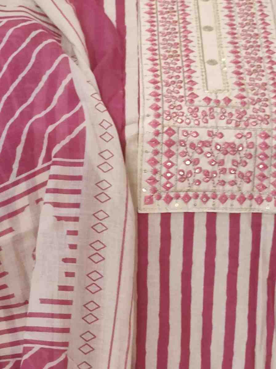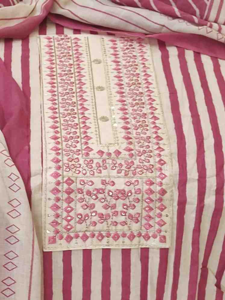 Light brown colour pure cotton printed and embrioded suit for Festive and special occasions. Top material is printed cotton light brown colour with embroidery and sequin work on the tie patti . Dupatta is printed mul cotton.Dimensions: