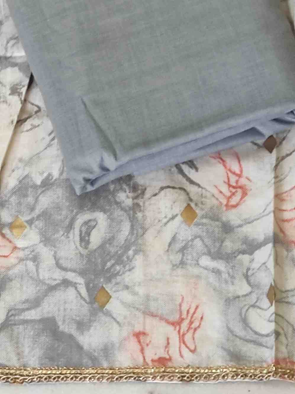 Be the first to review “LIGHT GREY AND WHITE COLOUR PURE COTTON PRINTED AND EMBRIODED SUIT”