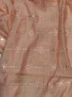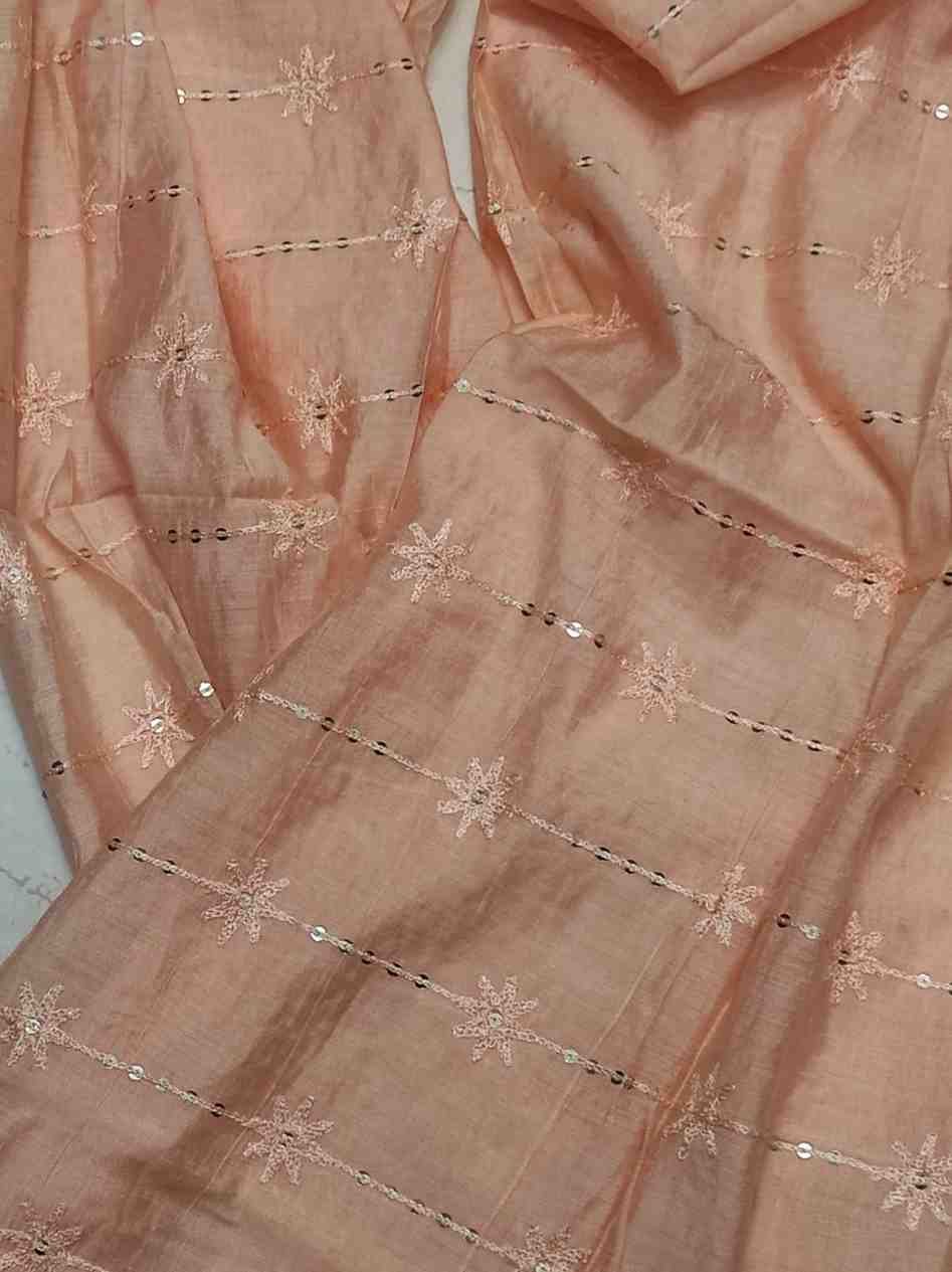 Elegant light orange colour semi silk dupatta with light sequin work that can be paired with any Indian or western outfit to give you a smart look.