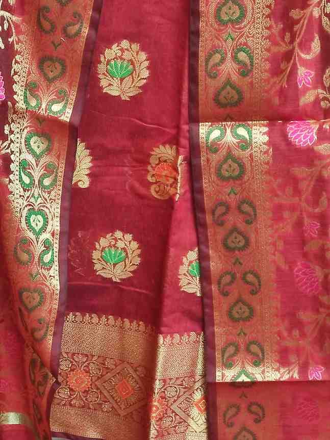 MAROON COLOUR ORGANZA BANARSI SILK SUIT