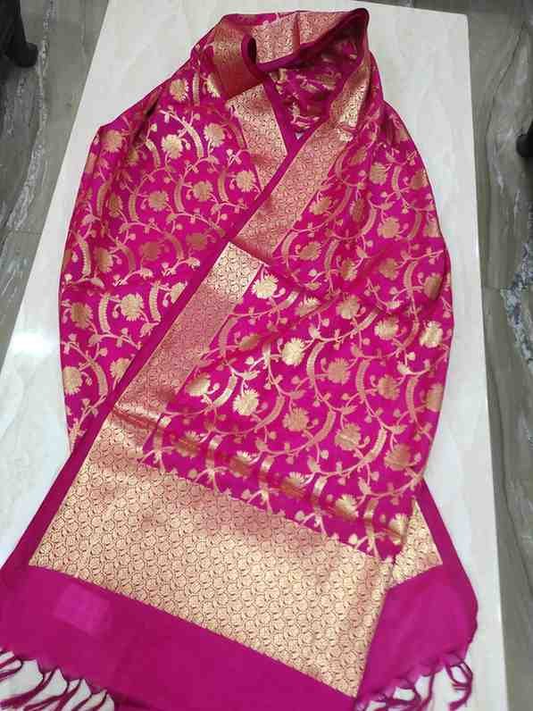 Elegant orange red colour semi silk dupatta with light sequin work that can be paired with any Indian or western outfit to give you a smart look.