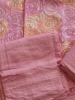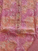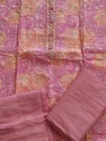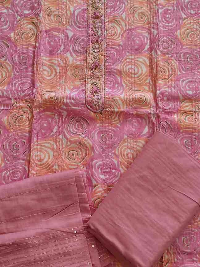 Pink colour pure cotton suit for Festive and special occasion wear, top material is very soft pure cotton printed material embellished with sequins and hand embroidery work. Bottom is pink colour plain rayon silk. Dupatta is pink colour semi silk with embroidery and sequin work.Dimensions: