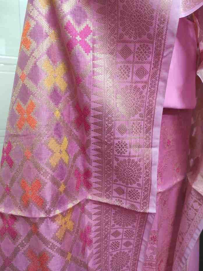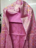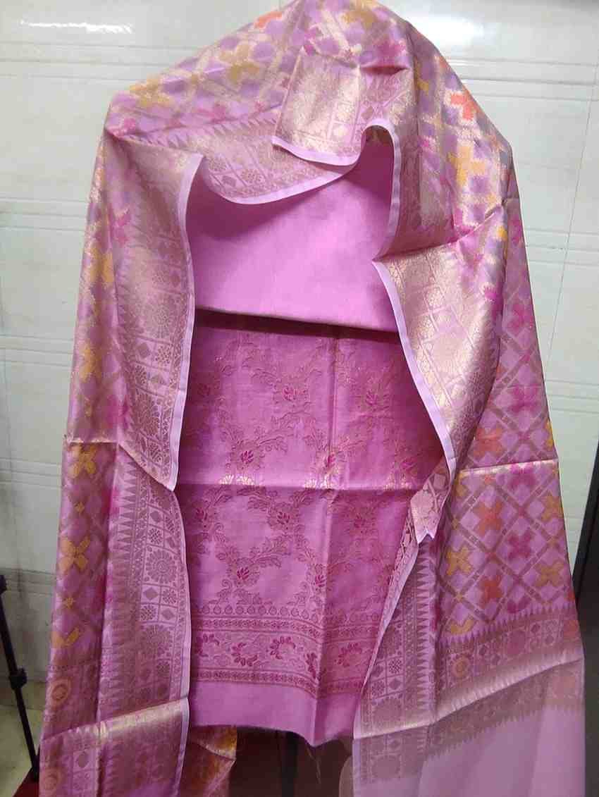 Pink colour tanchoi banarsi silk suit material with woven buttas all over.