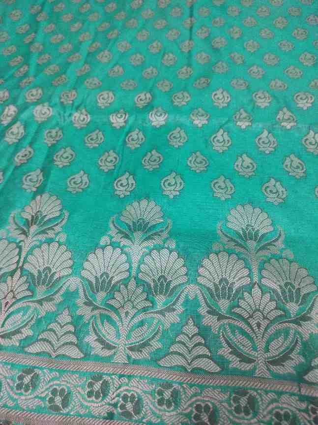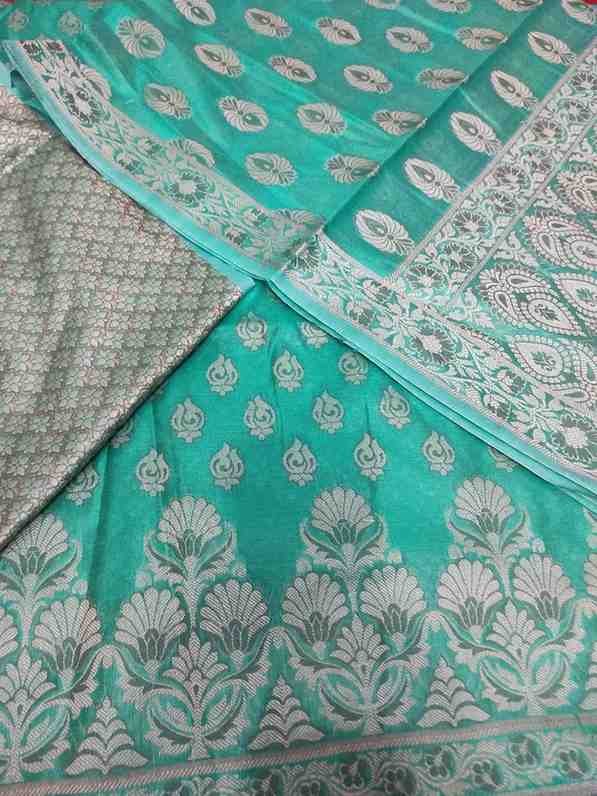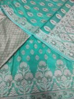Rama green colour tanchoi banarsi silk suit material with woven buttas all over.