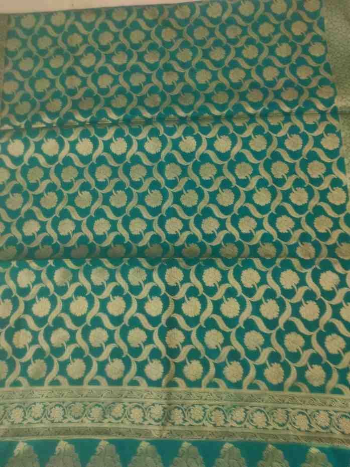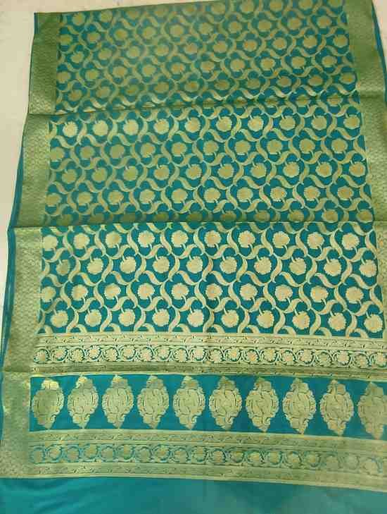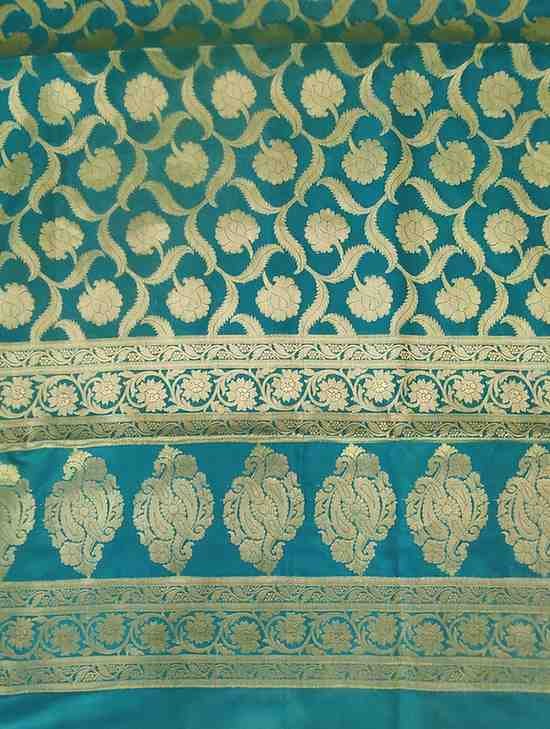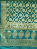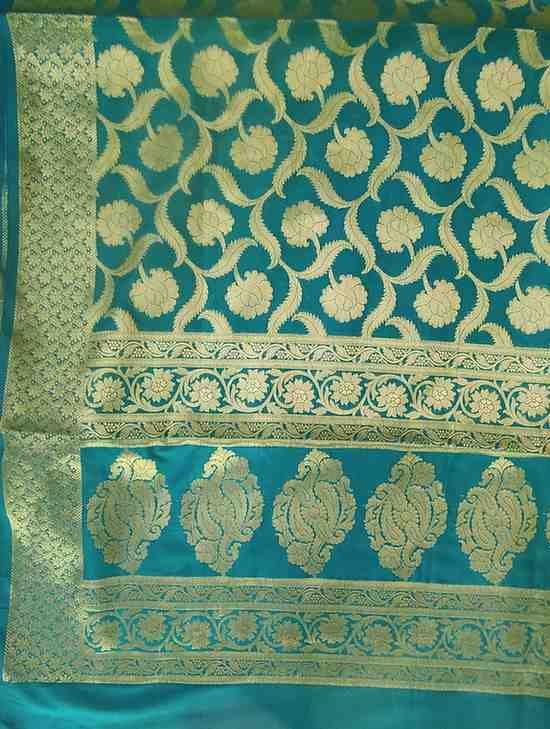 Exclusive festive and wedding special Turquoise Blue Katan Silk Banarsi zari woven dupatta with heavy zaal work.
