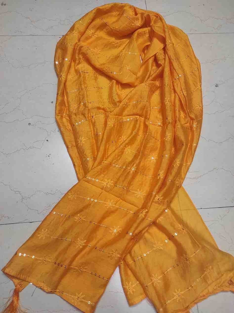 Elegant yellow colour semi silk dupatta with light sequin work that can be paired with any Indian or western outfit to give you a smart look.
